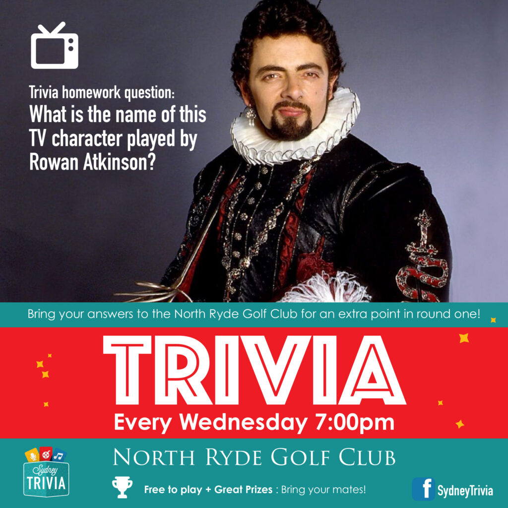 Join us for Trivia at the Club every Wednesday at 7pm. Bring your answer to the week’s homework question and earn an extra point – you won’t want to miss out!